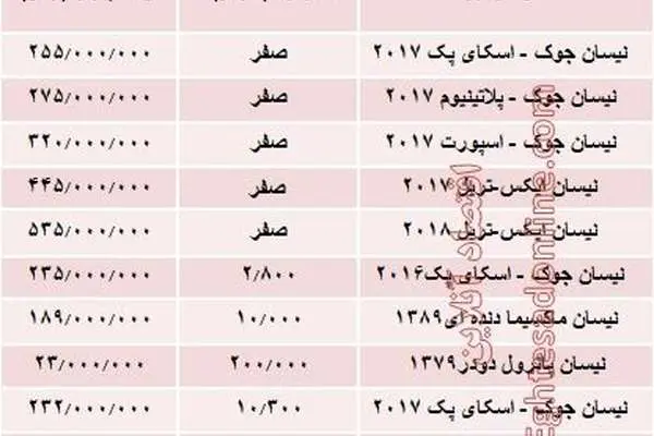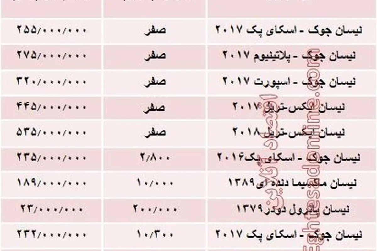 قیمت جدید انواع خودرو نیسان در بازار تهران