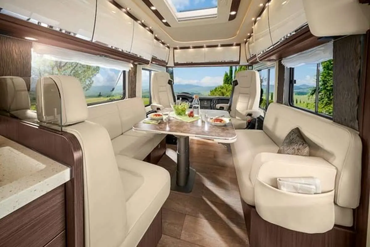 تصاویر اولیه منتشر شده از این ون نشان میدهد که درون آن یک میز ناهارخوری با مبل "L" شکل تعبیه شده است.