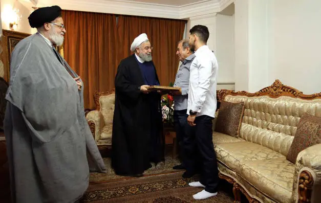(تصاویر) حضور روحانی در خانه سرلشگر خلبان غلامرضا یزد