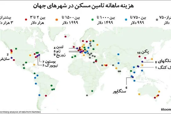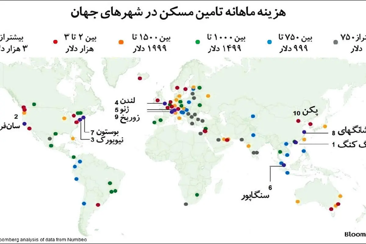 نقشه پراکندگی شهرهای گران جهان برای تامین سرپناه منتشر شد