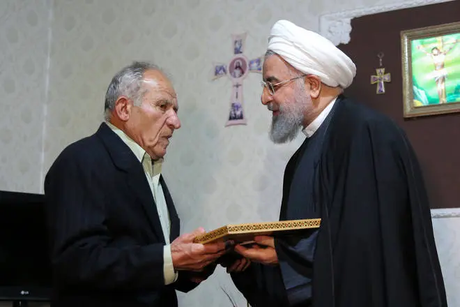رئیس جمهور خاطر نشان کرد: هموطنان ارامنه در صیانت و نگهداری از کشورمان همپای مردم مسلمان در صحنه ایثار و فداکاری حضور داشته و امروز هم آماده فداکاری هستند و این بسیار قابل تحسین است.
