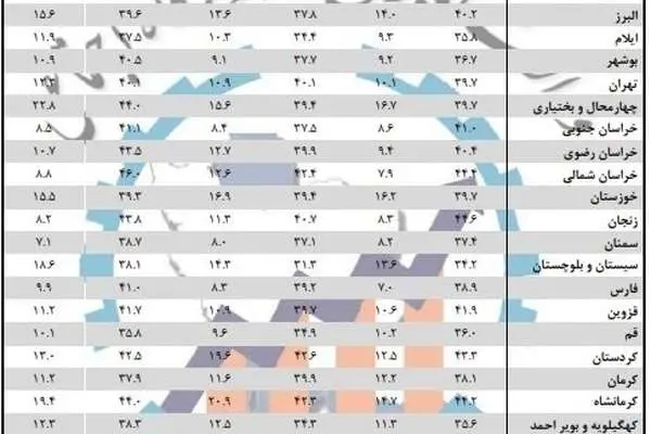 استان همدان با ۶.۱ درصد و پس از آن فارس با هفت درصد دارای کمترین نرخ بیکاری در میان استانهای کشور بودند. بیشترین میزان بیکاری هم متعلق به چهارمحال و بختیاری با ۱۶.۷ درصد است و استانهای خوزستان با ۱۶.۲ درصد، لرستان ۱۶.۱ درصد و هرمزگان ۱۵.۹ درصد در ردههای بعدی قرار دارند.