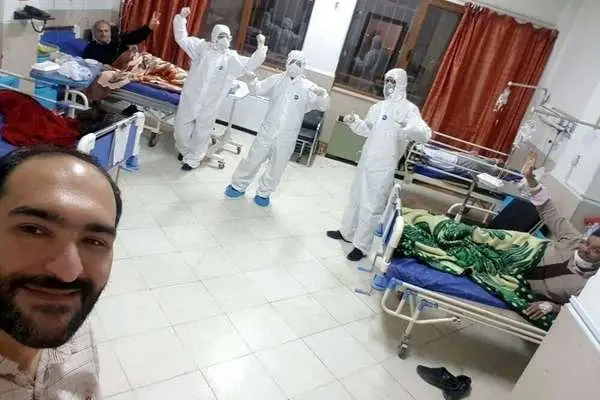 (عکس) سلفی بیمار مبتلا به کرونا با پرستاران خود