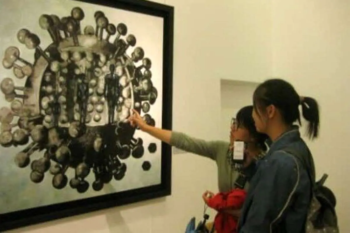 او با تاکید بر اینکه هنگام خلق این اثر هیچ ذهنیتی از ترسیم یک ویروس در ذهن نداشته، ادامه میدهد: من در این اثر یک کارخانه تولید انبوه را کشیده بودم و اصلا به ذهنم نمیرسید که روزی برسد که همانند فیلمهای هالیوودی همه مردم دنیا از ترس یک ویروس کوچک ذرهبینی در خانههایشان بمانند و دنیا مختل شود.