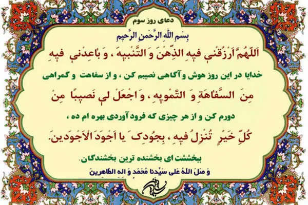 دعای روز سوم ماه مبارک رمضان + ترجمه و شرح آن