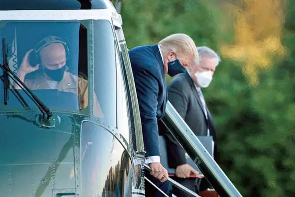 در حالی که کاخ سفید پس از مثبت شدن نتیجه آزمایش کرونای ترامپ اعلام کرده بود که رئیسجمهوری آمریکا و بانوی اول از علائم خفیف این بیماری بهره میبرند، اما ساعاتی پس از اعلام این بیانیه خبر رسید که ترامپ با یک هلیکوپتر به یک بیمارستان نظامی منتقل شد. به نوشته روزنامه نیویورکتایمز، روز جمعه ترامپ با هلیکوپتر به بیمارستان نظامی والتر رید منتقل شد و انتظار میرود چند روزی را در آنجا به سر کند.