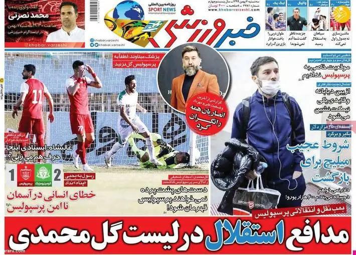 اولین بمب یحیی: مدافع استقلال در فهرست خرید پرسپولیس؛ روزنامههای ورزشی امروز سه شنبه ۷ بهمن