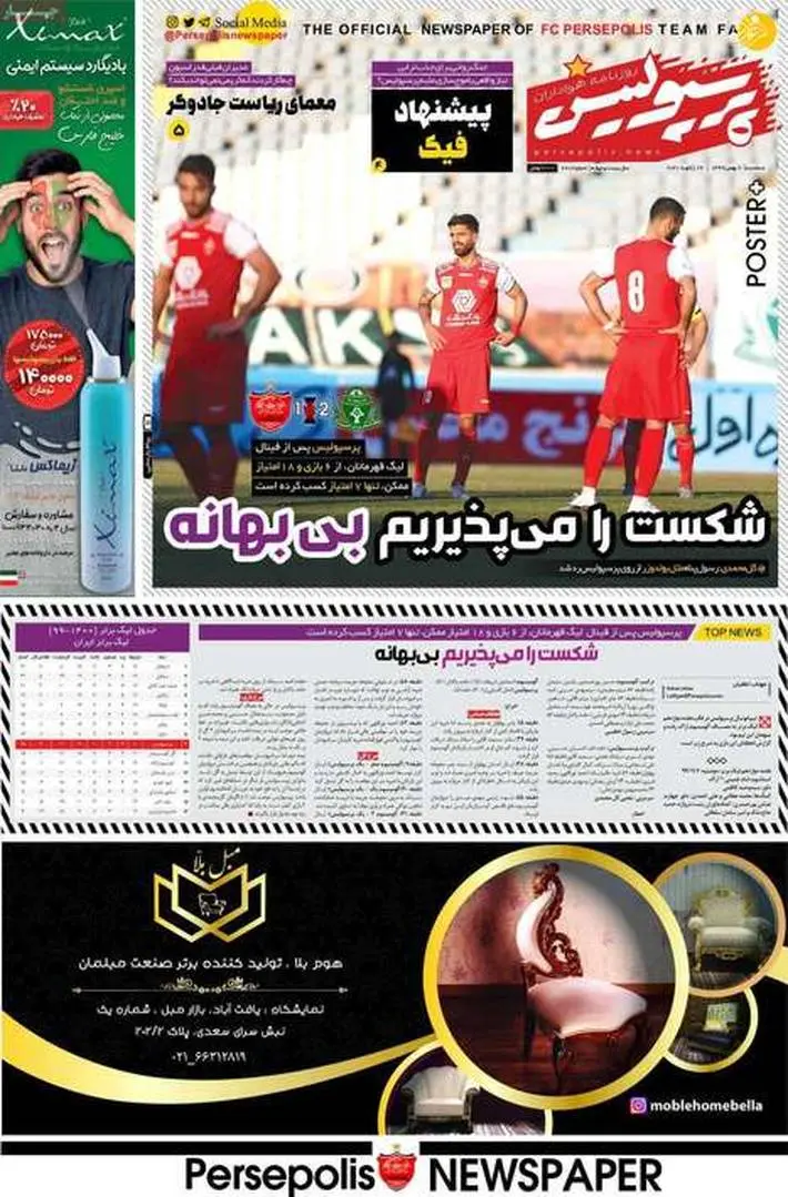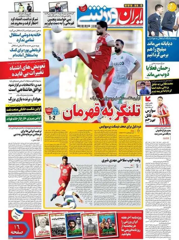 شکست پرسپولیس برابر آلومینیوم در اراک، سوژه اصلی تمامی روزنامههای ورزشی امروز است؛ تحلیل این شکست و رسیدن به این نتیجه که ترکیب یحیی گل محمدی برای این بازی خوب نبوده، دیگر وجه اشتراک روزنامههای امروز است. در این بین یکی از رسانههای ورزشی هم به فهرست خرید گل محمدی در نیم فصل اشاره کرده که قرار است مدافع استقلال را بخرد!