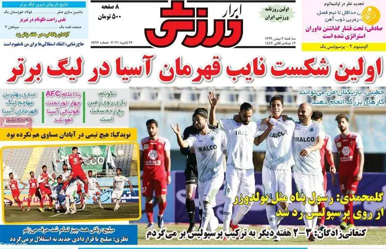 روزنامههای ورزشی امروز سه شنبه ۷ بهمن