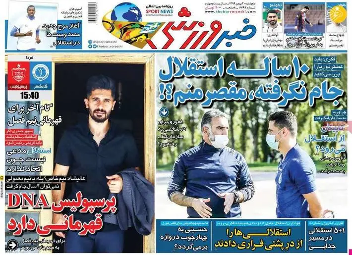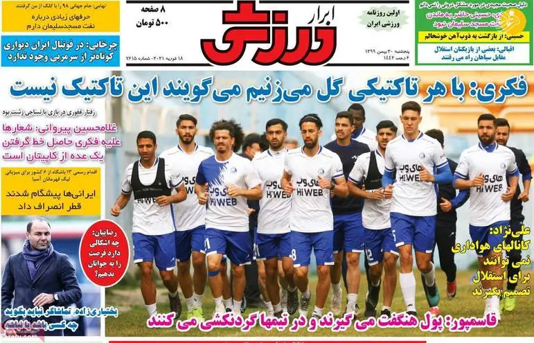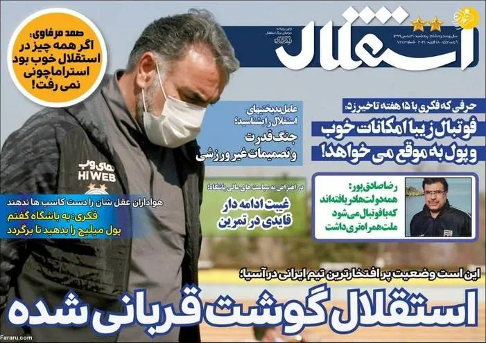روزنامههای ورزشی امروز همچنان به مشکلات موجود در باشگاه استقلال رسیده اند و در این بین صحبتهای محمود فکری که در جمع هواداران عنوان شده را روی جلد برده اند. از طرفی یکی از روزنامهها نوشته که ۶ بازیکن استقلال در آستانه جدایی از این تیم قرار دارند.