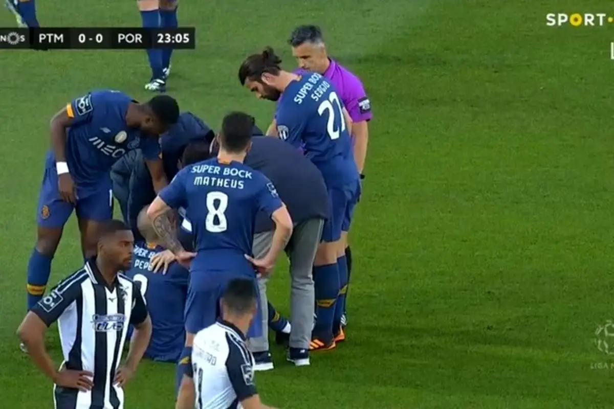 پپه، ستاره پرتغالی پورتو، در جریان دیدار امروز این تیم مقابل پورتیموننز دچار مصدومیت و زمین مسابقه را ترک کرد.