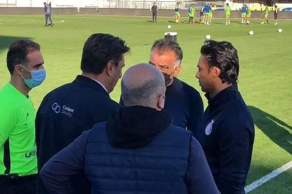 * بیژن طاهری سرپرست و فرزاد مجیدی مربی تیم استقلال صحبتهایی را با حسن نوشهور ناظر بازی انجام دادند، اما به نتیجهای نرسیدند.