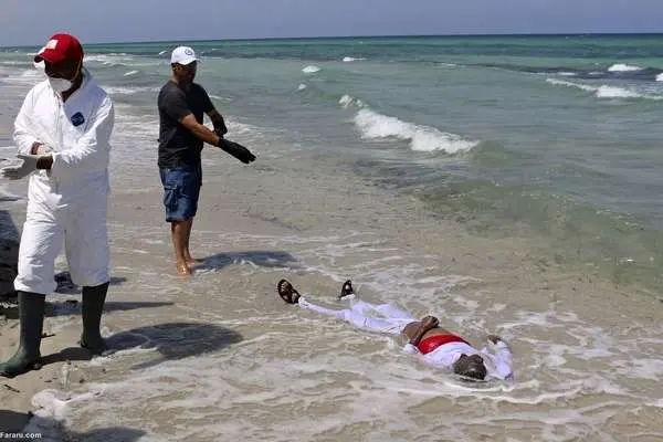 (ویدئو) کشف اجساد ۲۸ مهاجر در ساحل لیبی