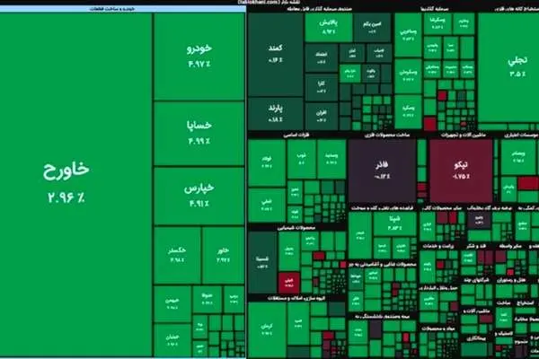 فولاد مبارکه اصفهان، ملی صنایع مس ایران، صنایع پتروشیمی خلیج فارس، پتروشیمی پارس، گسترش نفت و گاز پارسیان، سرمایه گذاری نفت و گاز و پتروشیمی تامین و سرمایه گذاری غدیر نسبت به سایر نمادها بیشترین تاثیر مثبت را روی بورس گذاشتند.
