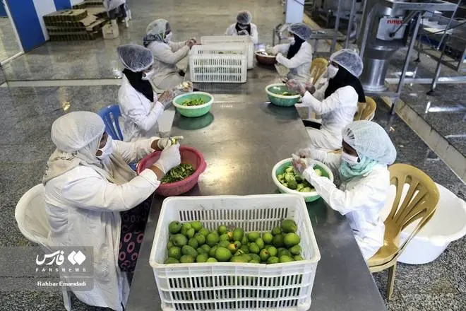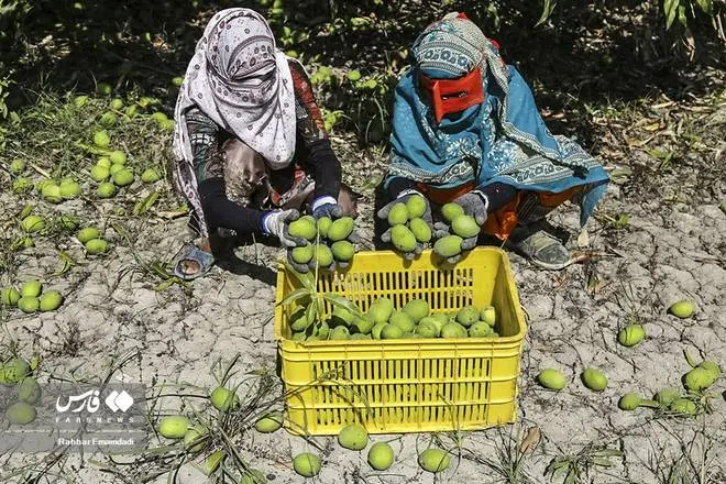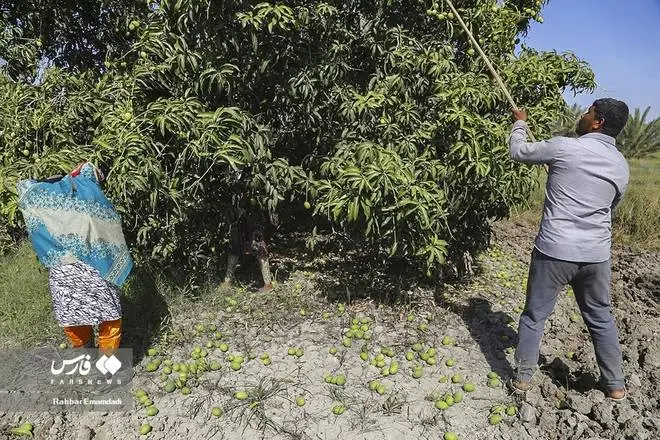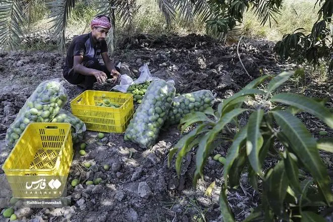 همه ساله برداشت محصول انبه سبز و نارس (کال) از دو هزار و ۸۰۰ هکتار باغات در شهرستانهای رودان، میناب و بندرعباس از اردیبهشتماه آغاز میشود و در تیرماه نیز میوه رسیده این محصول برداشت میشود. امسال ۲۹ هزار تن محصول انبه برداشت میشود که بعلت بارندگیها، ۱۰ درصد بیشتر از پارسال است. ۷۰ درصد انبه هرمزگان به صورت نارس برداشت میشود که در هفت واحد صنایع ترشی و شوری استفاده میشود. مهمترین ارقام انبه در استان آل مهتری، کلک سرخ و هلیلی است که در شهرستانهای میناب، رودان و بندرعباس تولید میشود.