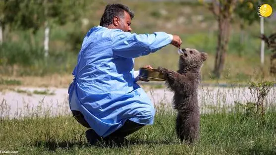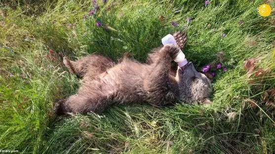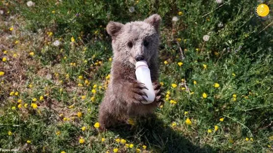 در مرکز حفاظت و توانبخشی حیوانات وحشی در فواصل سه ساعته مخلوطی از شیر، عسل و آنتی بیوتیک به توله خرس داده میشود.