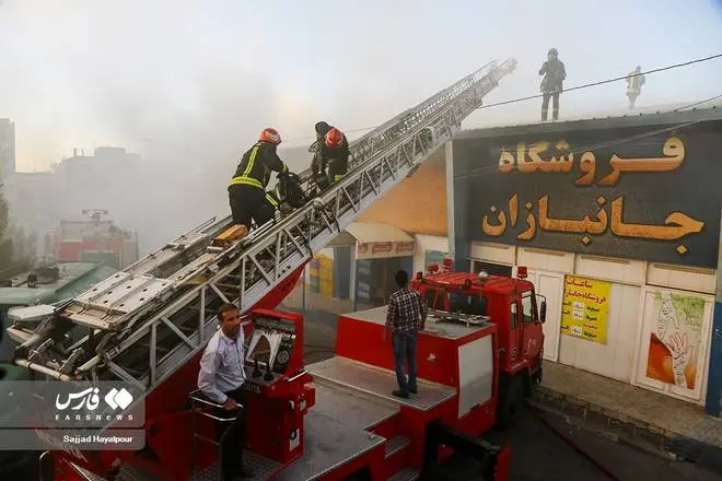 (تصاویر) آتشسوزی در فروشگاه جانبازان شهرک پردیسان قم