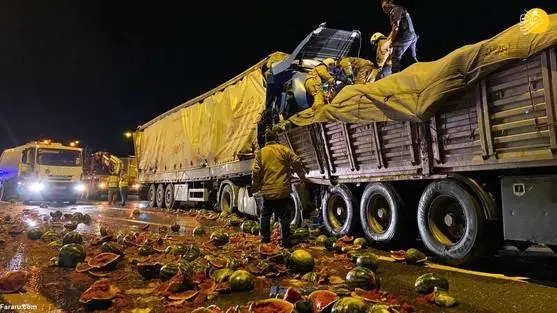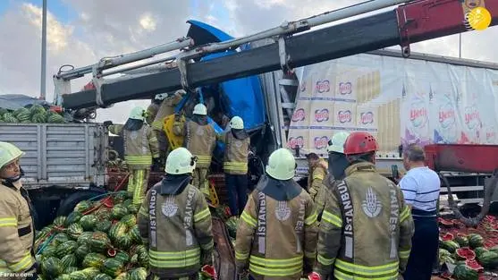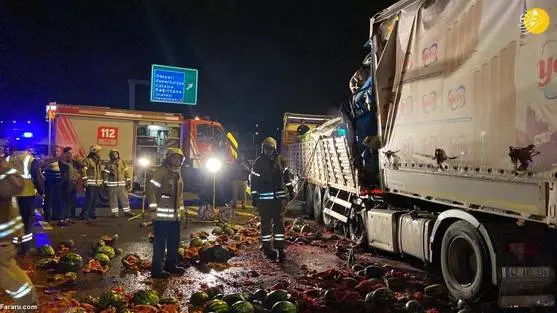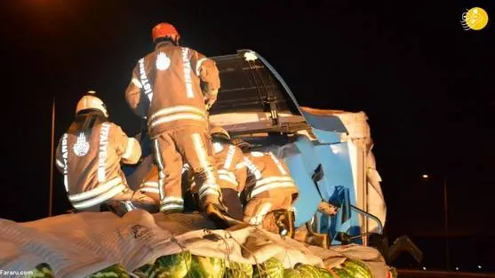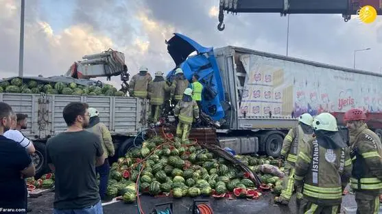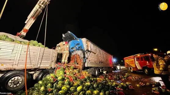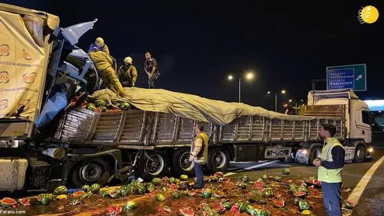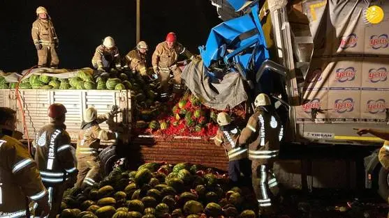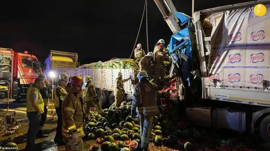 (تصاویر) تصادف شدید کامیون حامل هندوانه