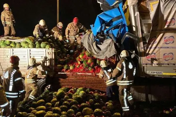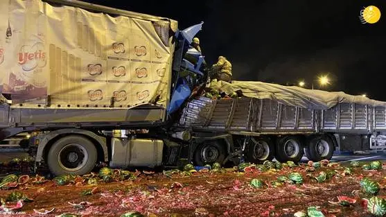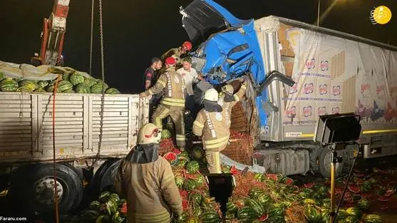 بر اثر برخورد دو کامیون در بزرگراه مرمره شمالی ترکیه یک نفر جان باخت. در این حادثه یک تریلی با تریلی حامل هندوانه از پشت برخورد کرده است.