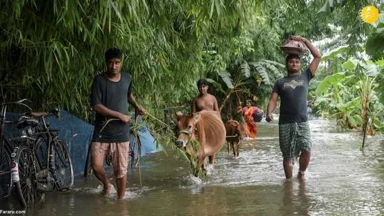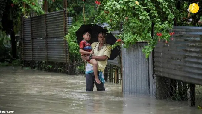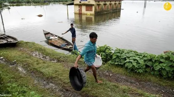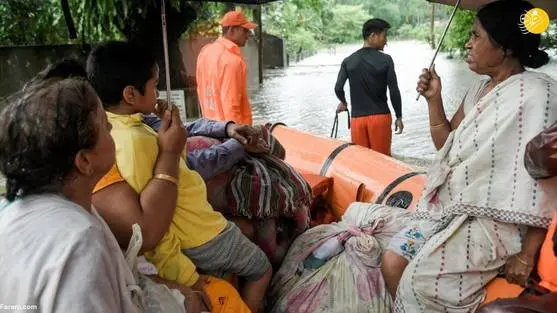 (تصاویر) بارانهای موسمی باعث جاری شدن سیل در هند شد