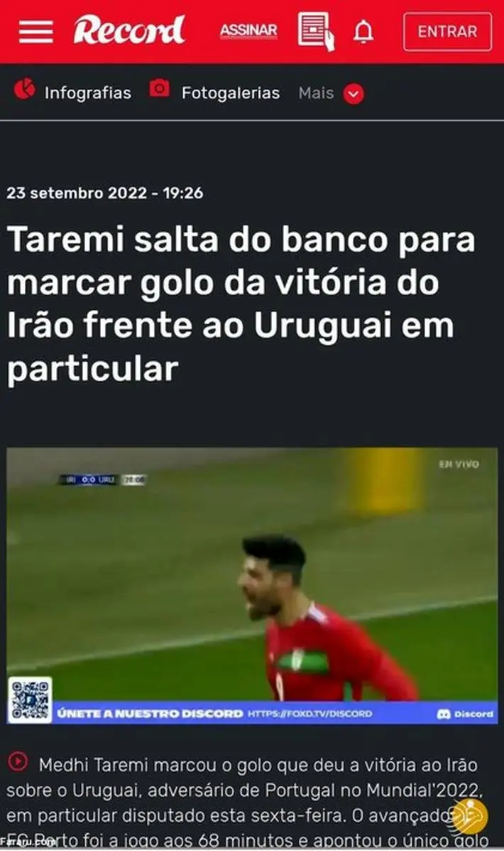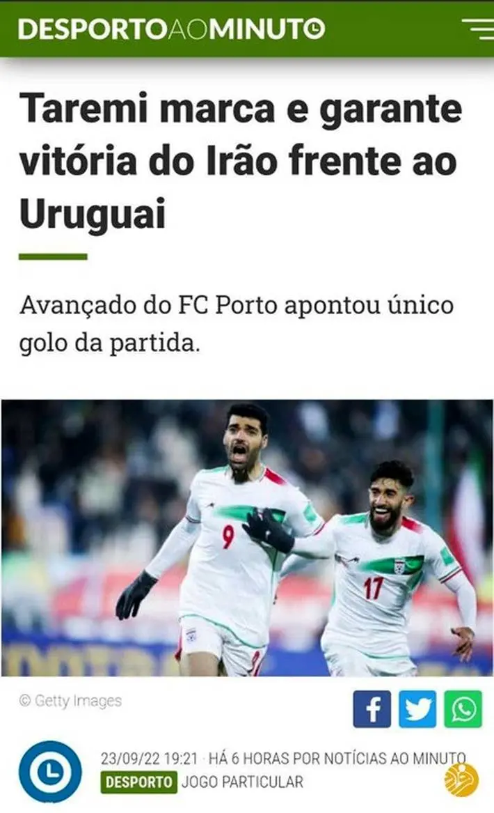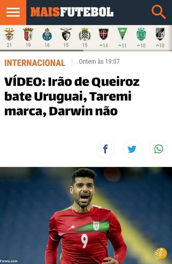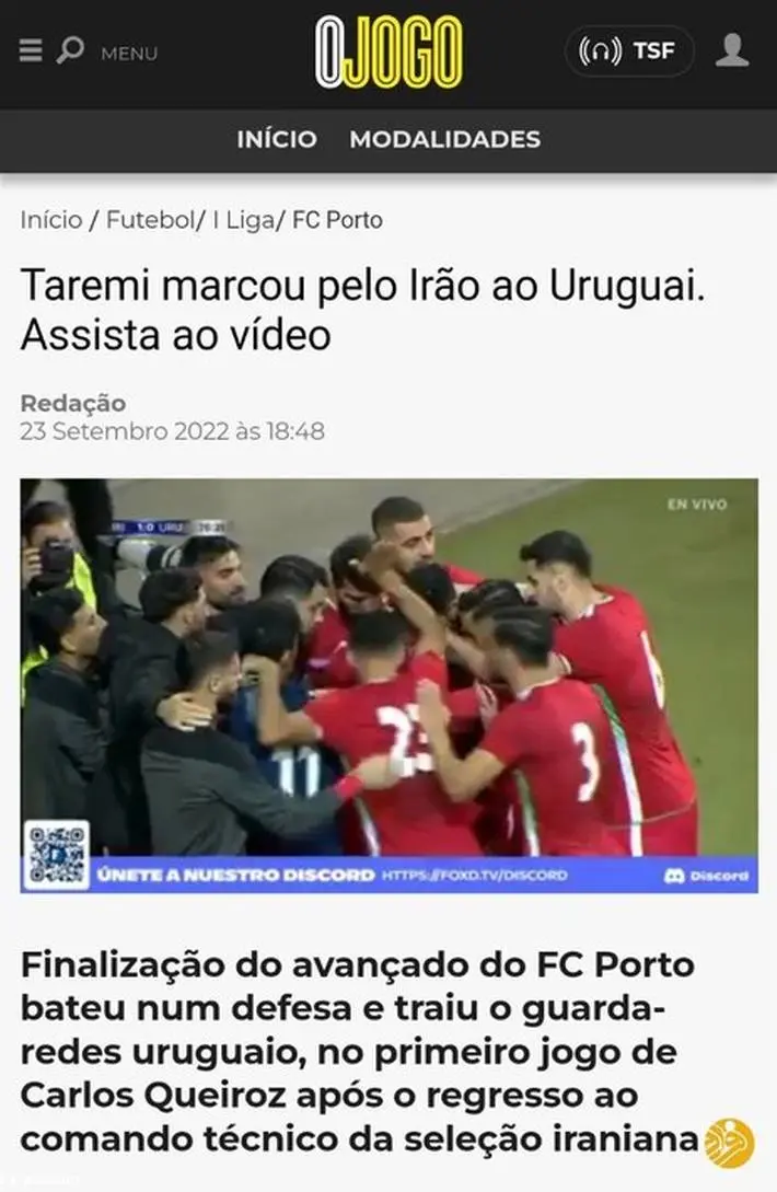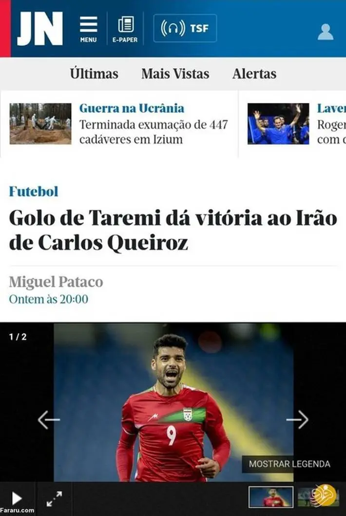 تمامی روزنامهها و رسانههای مطرح کشور پرتغال نسبت به پیروزی تیم ملی ایران با گلزنی طارمی واکنش نشان دادهاند.