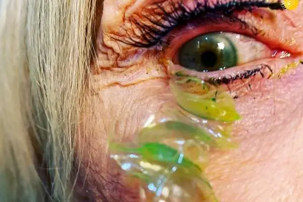 وی گفت: من تمام لنزها را با دقت جدا کردم و در مجموع ۲۳ عدد را شمردم. برای جدا کردن لنزها مجبور شدم از یک ابزار جراحی بسیار ظریف، یک پنس استفاده کنم. آنها اساساً پس از یک ماه نشستن زیر پلک به هم چسبیده شدند.