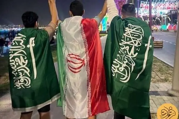 خبرنگار قطری تصویری از یک هوادار ایرانی با دو هوادار عربستانی را منتشر کرد و از آن به عنوان یک صحنه تاریخی در جام جهانی یاد کرد.