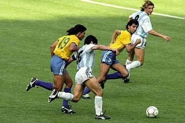 در آن سال بعد از صعود آرژانتین در مرحله گروهی که از قضا شروعش همانند این جام با شکست برابر نماینده آفریقای جنوبی کامرون همراه بود، مارادونا و یارانش به عنوان تیم سوم از گروهی که شوروی سابق و رومانی را نیز در خود می دید، به مرحله حذفی رقابت ها رسید. بازی یک هشتم مدافع عنوان قهرمانی آن سال برابر برزیل بود، مارادونا و هم تیمی هایش در آن بازی بزرگ آن مرحله و در روزی که برزیل در اوج بد شانسی سه بار تیر دروازه آرژانتین را به لرزه در آورد، روی نبوغ مارادونا و پاس کم نظیرش به کانیجیا یک بر صفر به پیروزی رسید تا برزیل از گردونه رقابت ها حذف شود.
