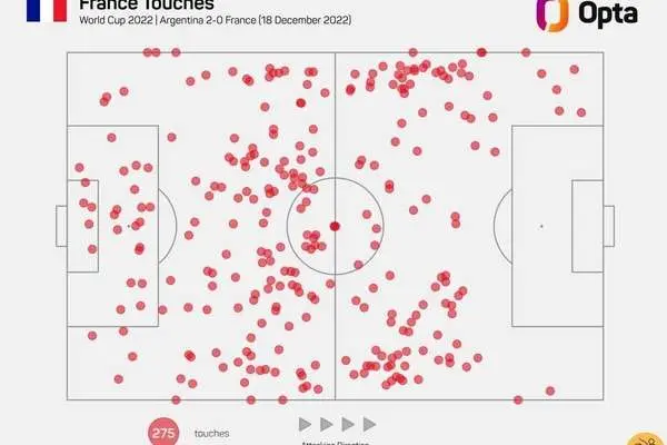 در نیمه نخست فینال جام جهانی تعداد لمس توپ فرانسویها در محوطه جریمه آرژانتین «صفر» پاس بود!