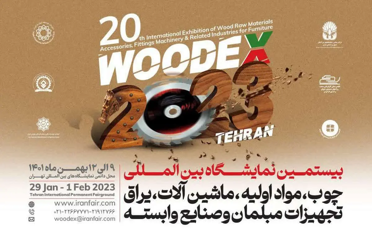 بیستمین دوره نمایشگاه بینالمللی چوب، مواد اولیه، ماشینآلات، یراق، تجهیزات مبلمان و صنایع وابسته (WOODEX) از ۹ الی ۱۲ بهمن ماه از ساعت ۸ صبح الی ۱۵ عصر فعال خواهد بود.