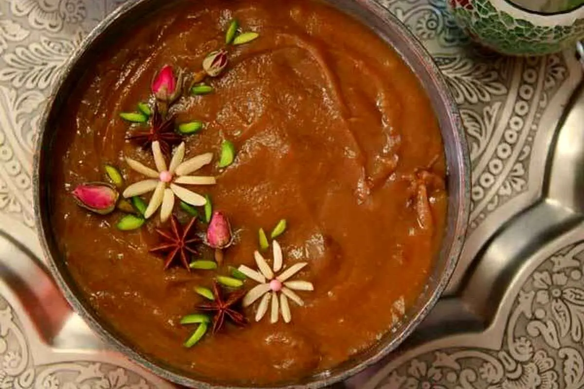 ۸. حدود ۱ الی ۱.۵ ساعت طول میکشد تا رنگ آن تیره شود. پس از گذشت ۱.۵ ساعت، سمنو آماده است. میتوانید چند بادام با پوست هم داخل آن قرار دهید و پس از سردشدن، آن را سرو کنید.