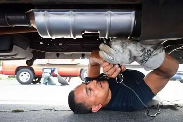 ویدیویی ثبت شده از لحظه سرقت اگزوز خودرو توسط دو سارق آمریکایی در کالیفرنیا را ببینید.
