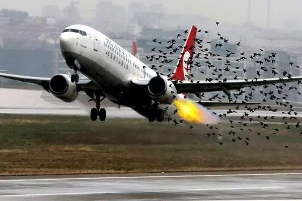 (ویدئو) برخورد دسته پرندگان به دماغه و موتور هواپیما / فیلم مربوط به ایران نیست