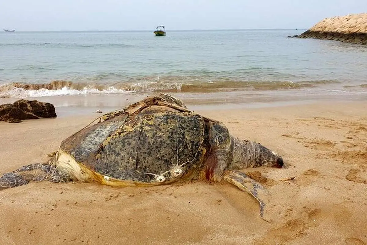 (ویدئو) لاشه لاکپُشت سبز در ساحل قشم