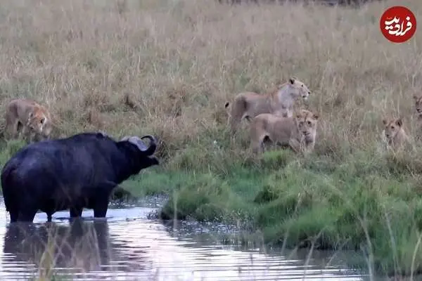 درست مثل این ویدئو که در ماسایی مارا ضبط شده و نشان می‌دهد که چگونه بوفالو با وارد شدن به آب، از محاصره ۲۰ شیر گرسنه در امان می‌ماند.