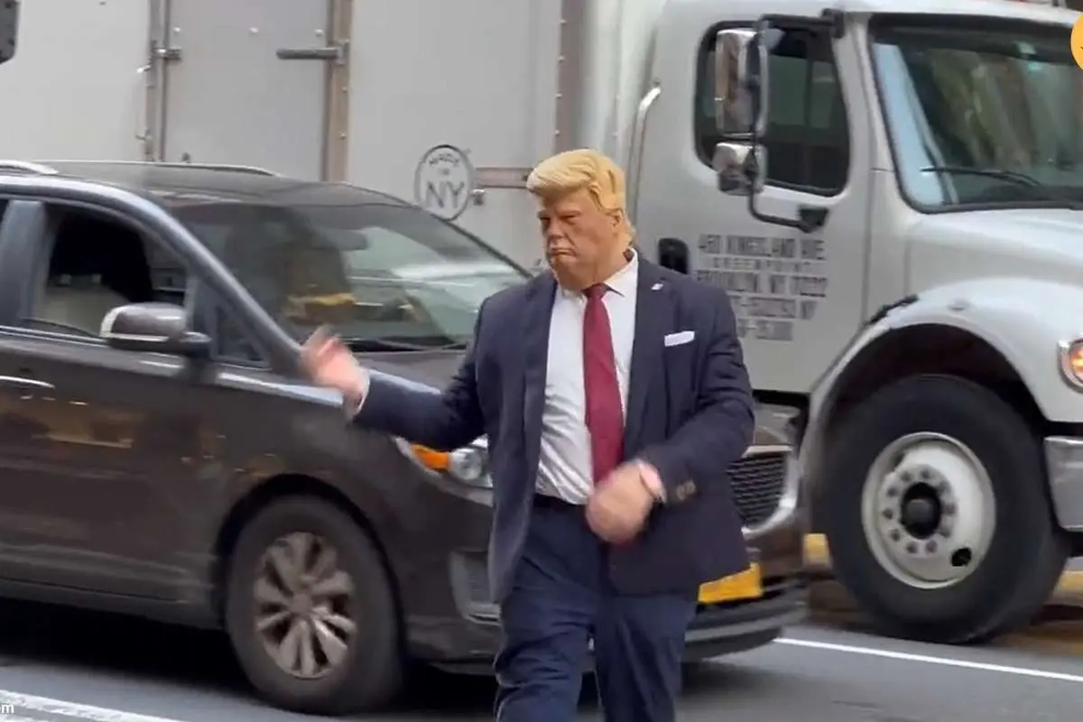 مردی که با زدن یک نقاب خود را به جای دونالد ترامپ رئیس جمهور سابق آمریکا معرفی میکند در خارج از برج ترامپ در شهر نیویورک به هدایت خودروها در خیابان پرداخت. هیئت منصفه دادگاهی در منهتن نیویورک روز پنجشنبه رای داد که دونالد ترامپ در پرونده پرداخت حق السکوت به استورمی دانیلز، یک بازیگر فیلمهای مستهجن، رسما متهم شود. ترامپ در واکنش، رای این هیئت منصفه را انتقامگیری سیاسی در جهت تاثیر گذاشتن بر انتخابات ریاست جمهوری ۲۰۲۴ دانسته است. رئیس جمهور سابق آمریکا قرار است سهشنبه آینده خود را به دادگاه معرفی کند. ترامپ نخستین رئیس جمهوری سابق آمریکا است که دادگاهی اتهامات کیفری علیه او را بررسی میکند.