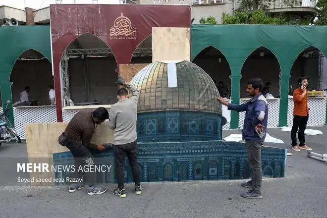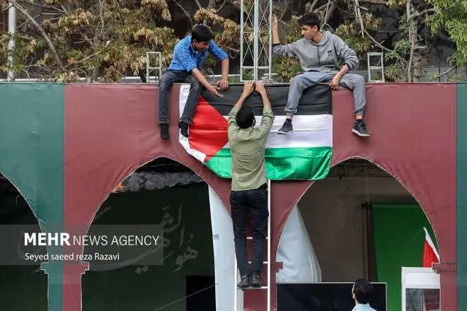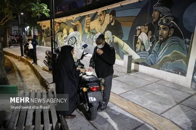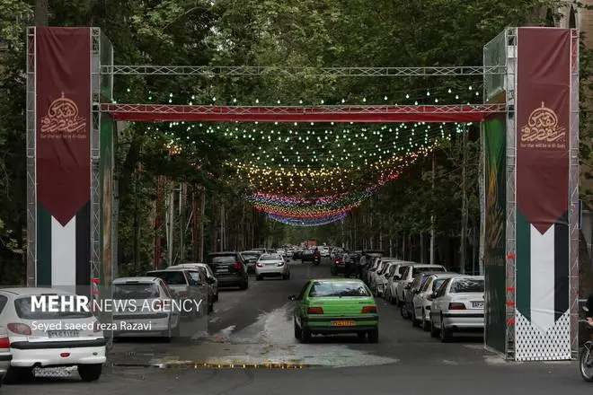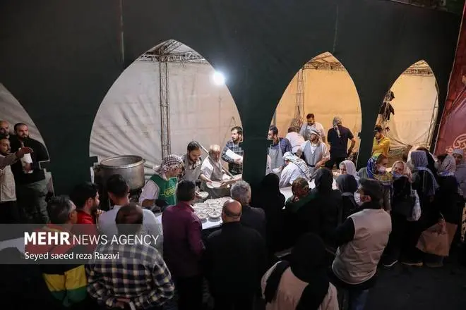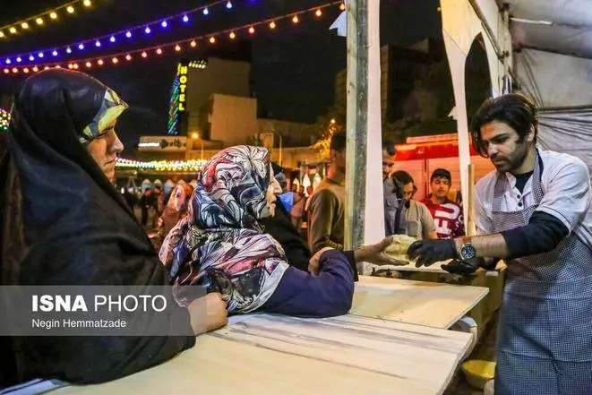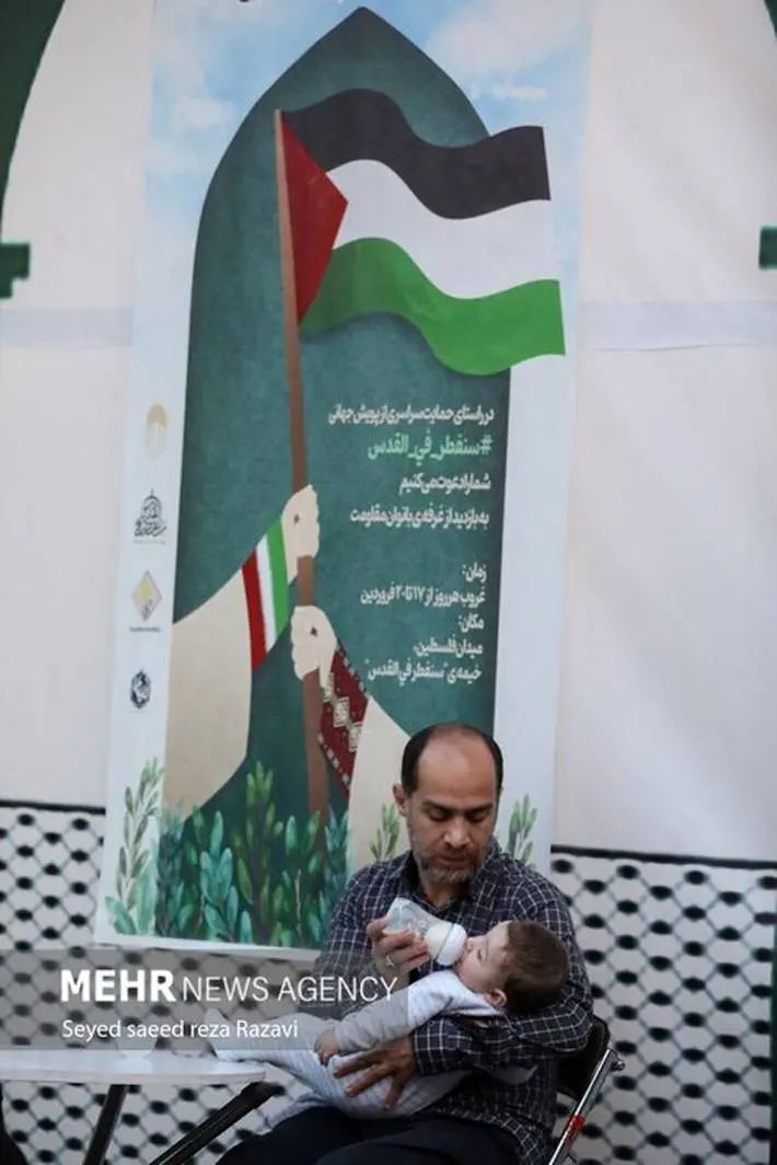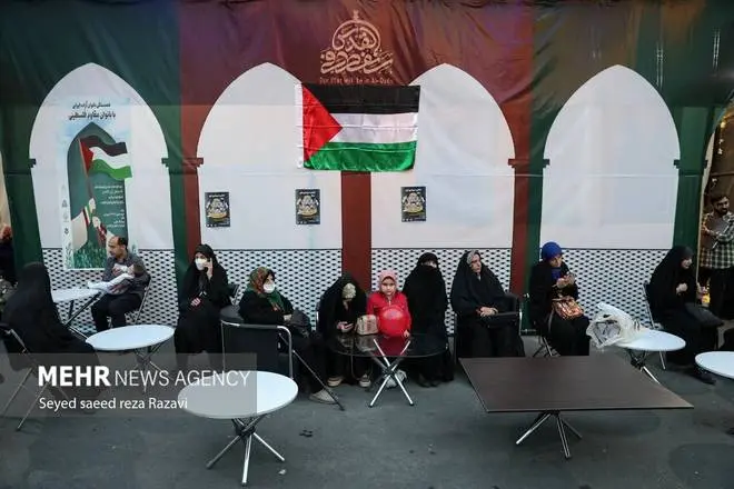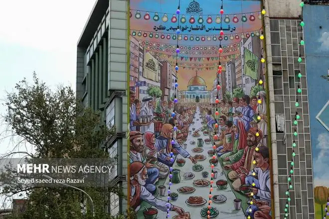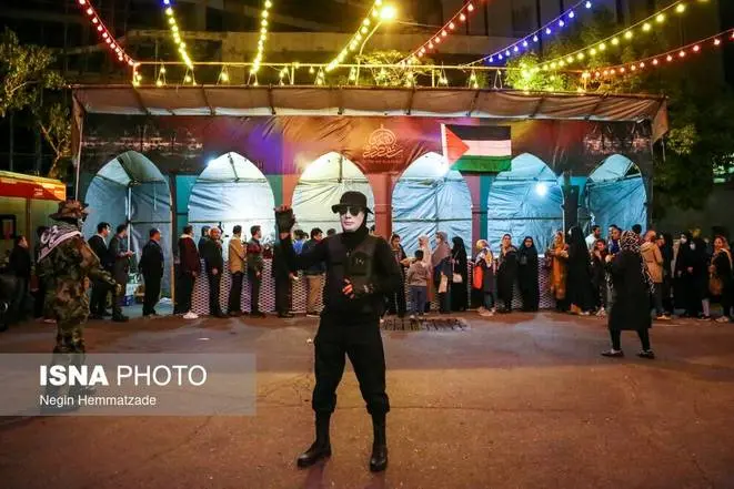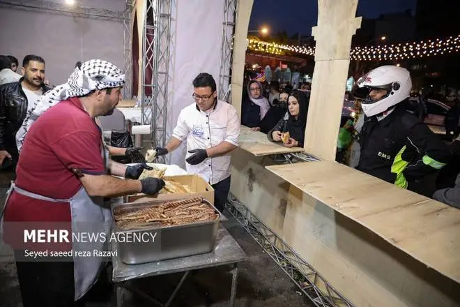 ضیافت افطاری فلسطینی همراه با برپایی مواکب فرهنگی و پذیرایی و اجرای گروههای سرود با حضور مردم روزه در میدان فلسطین از اذان مغرب میزبان روزهداران و بازدیدکنندگان است.
