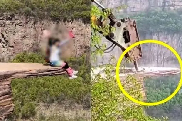 لبه صخرهای در چین که به «آزمون شجاعت» معروف بود تخریب شد
