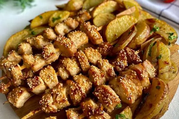 کباب مرغ کنجدی با سس مرینت سویا سس تهیه میشود و شما میتوانید این کباب را به سیخ چوبی بزنید و داخل تابه یا سرخکنها رژیمی بپزید.