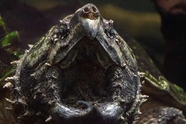 این نوع از لاک پشت در حالی که بی حرکت در انتهای رودخانه مینشیند با تکان دادن زبان اش که شکل یک کرم در حال چرخش را تقلید میکند به عنوان طعمهای برای جذب ماهیهای کوچک عمل مینماید. زمانی که ماهیهای کوچک وارد دهان اش شدند دهان را بسته و سپس آنان را میخورد.