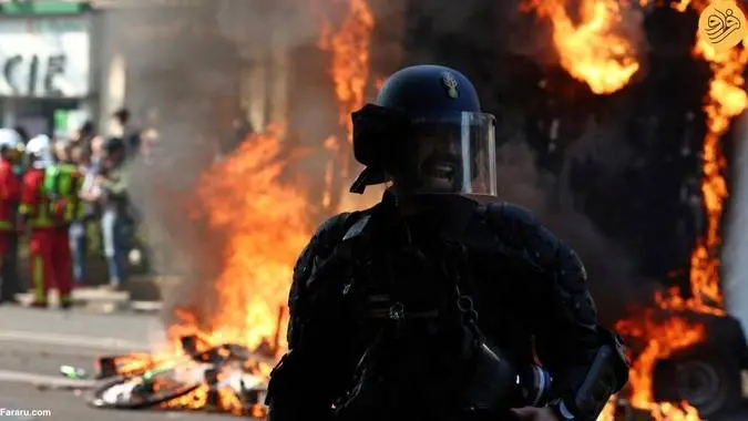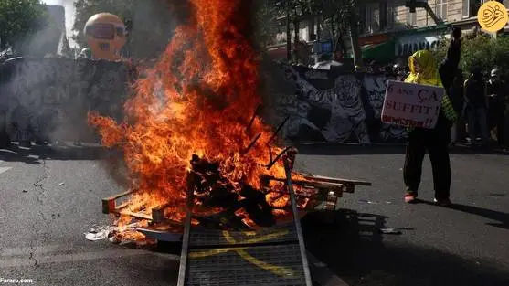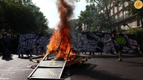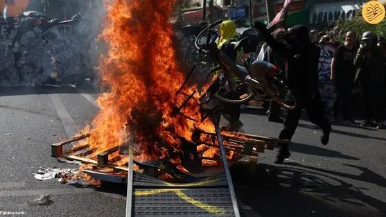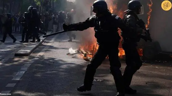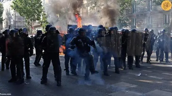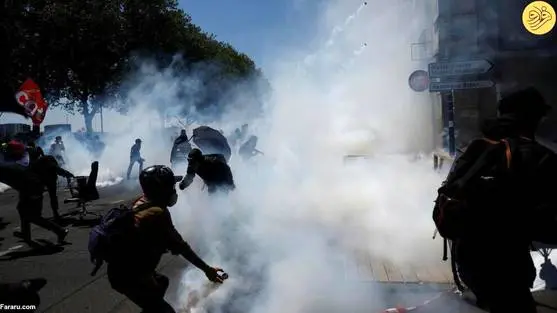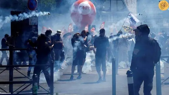 (تصاویر) درگیری پلیس با معترضان به قانون بازنشستگی در فرانسه