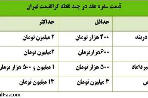 پولی که این شرکت بابت هر سفره عقد دریافت می کند از پانصد و 50هزار تومان شروع می شود تا 1میلیون و 300هزار تومان.