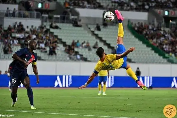 ابرستاره پرتغالی در بازی دوستانه با النصر مقابل پاریس یاد دوران رئال را زنده کرد و یک قیچی برگرداندن زیبا زد ولی به گل تبدیل نشد.