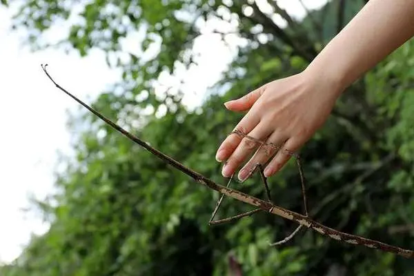 (تصاویر) اندازۀ باورنکردنی بزرگترین حشرات جهان چوبک بزرگ چان که با احتیاط به سمت بازوی انسان در حرکت است.