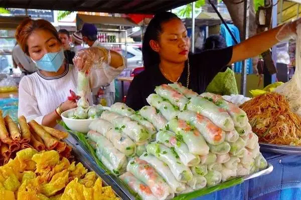 این ویدئو که در کامبوج ضبط شده است، دو دختر جوان را نشان میدهد که معروفترین اسپرینگ رول ها، پنکیکهای زرد، نودل و ونتون را آماده میکنند.