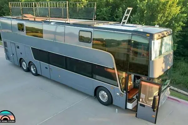 (ویدئو) فضای داخلی یک خانه اتوبوس لاکچری دو طبقه برای خانواده ۸ نفره!