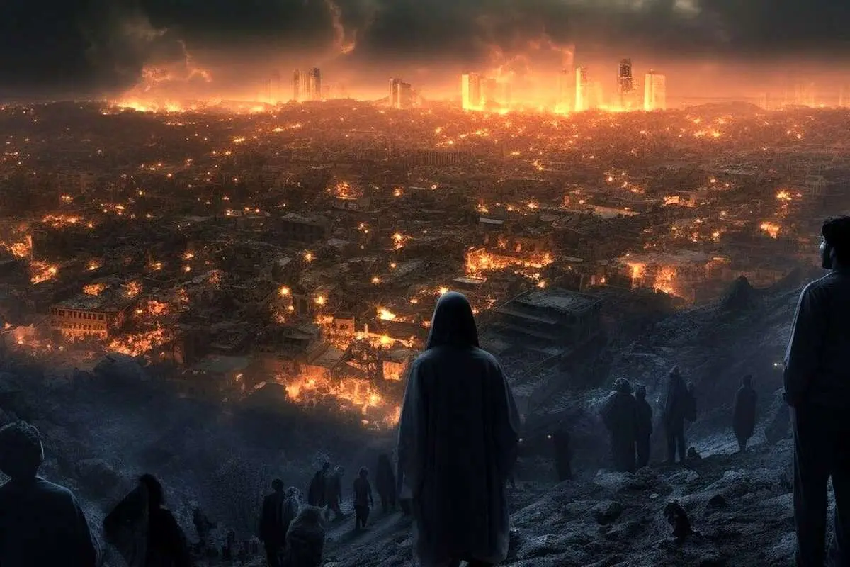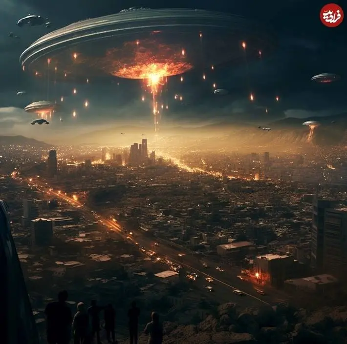 بازماندگانی که به کوه‌های اطراف تهران پناه برده‌اند و منظرۀ شهر که در آتش و ویرانی است، به اضافۀ حضور ترسناک و رازآلود سفینه‌هایی با شکل‌های عجیب و غریب. این تصویری است که هوش مصنوعی از حملۀ موجودات فضایی به تهران ساخته است!