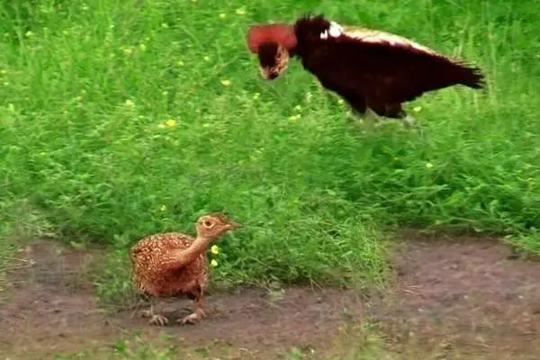 هوبره کاکلقرمز نر برای تحت تاثیر قرار دادن جفت ماده میرقصد، اما وقتی او علاقهای نشان نمیدهد شکست میخورد.