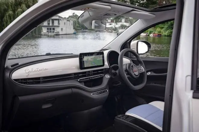 در فضای داخلی، نسخه ۵۰۰ e Gelateria دارای داشبورد کرم رنگ و صندلی راننده روکش شده است.
