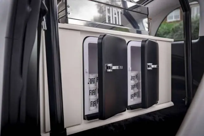ردیف دوم صندلیها در ۵۰۰ e برای فضای داخلی سفارشیسازیشده Gelateria Edition حذف شده تا جابهجایی را تسهیل کنند. این خودرو از طراحی دو رنگ استفاده میکند که روح یک ژلاتریای کلاسیک و محلی ایتالیایی دهه ۱۹۵۰ را تداعی کرده و ترکیبی از رنگ کرم و آبی روشن همراه با رینگهای آلیاژی چند پره است.